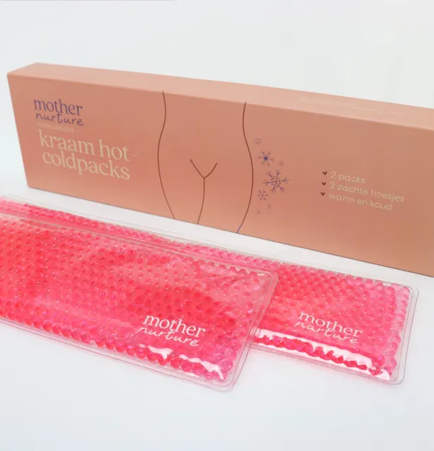 De coldpacks zijn dé lifesavers in de eerste week na je bevalling. Je krijgt er zelfs twee in de box zodat je nooit zonder zit. Je kunt ze gebruiken in je ondergoed als je pijn hebt door de bevalling, zowel voor hechtingen, zwellingen als aambeien. Ze zijn ook geweldig om je borsten mee te koelen bij stuwing. En nog een pluspunt: je kunt ze opwarmen. Erg fijn bij buikkrampjes of om je toeschietreflex te stimuleren.