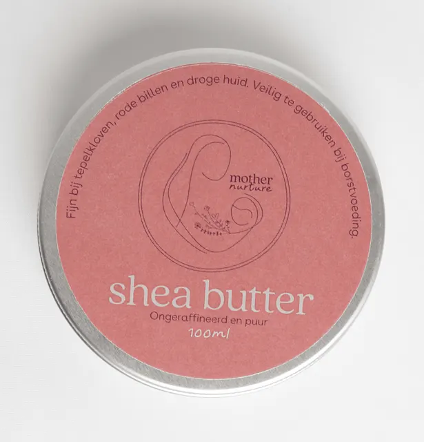 De meest veelzijdige en 100% natuurlijke lichaamsboter van Mother Nurture. Deze boter helpt goed bij tepelkloven en stimuleert het herstel van (genezen) hechtingen of rode babybillen. Shea butter bevat vitamine A, D, E en F en wordt via je huid opgenomen. Shea butter kun je op ieder lichaamsdeel gebruiken, lekker duurzaam en multifunctioneel! Je kunt het zelfs gebruiken als lippenbalsem, massagecréme of aftersun.