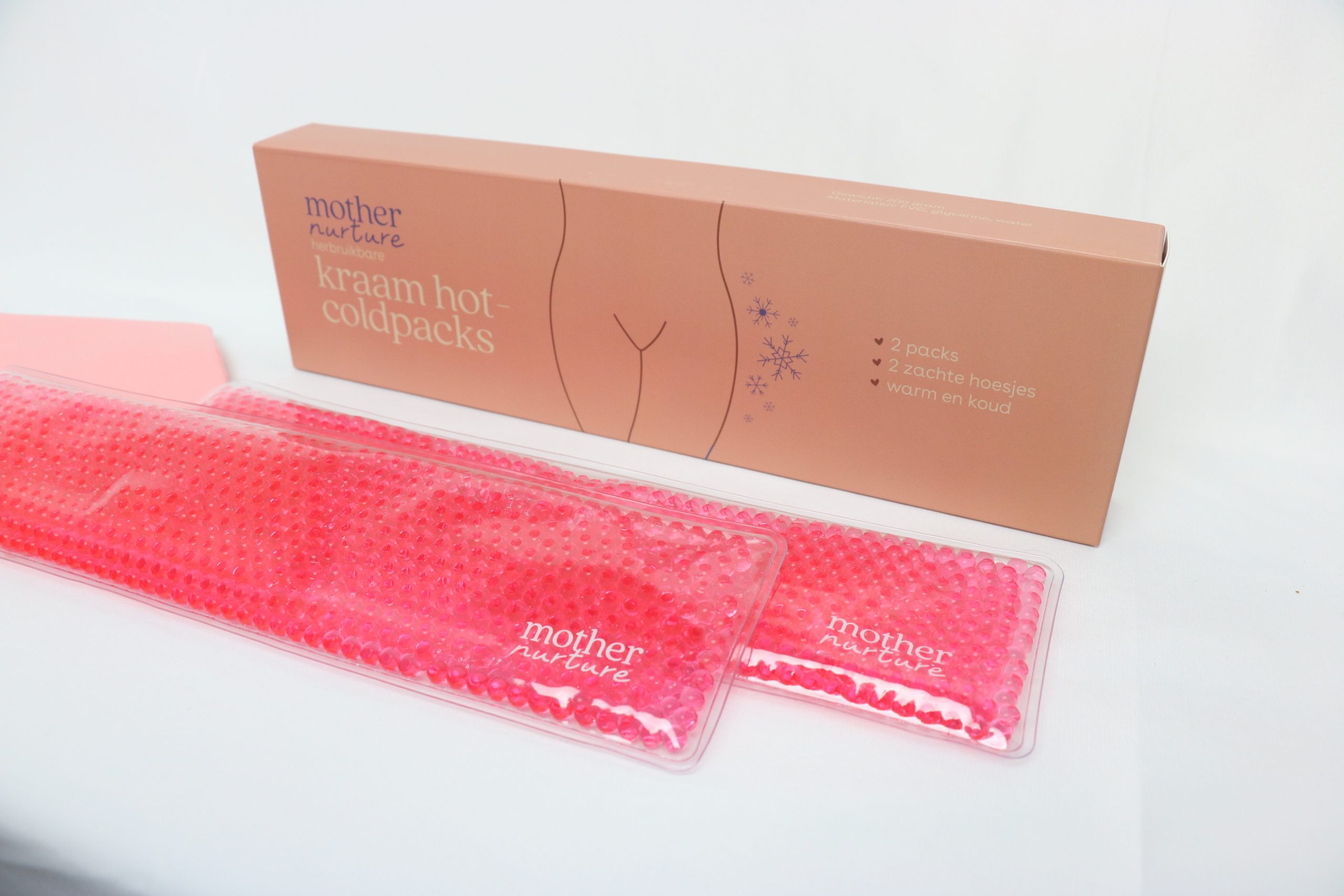 De coldpacks zijn dé lifesavers in de eerste week na je bevalling. Je krijgt er zelfs twee in de box zodat je nooit zonder zit. Je kunt ze gebruiken in je ondergoed als je pijn hebt door de bevalling, zowel voor hechtingen, zwellingen als aambeien. Ze zijn ook geweldig om je borsten mee te koelen bij stuwing. En nog een pluspunt: je kunt ze opwarmen. Erg fijn bij buikkrampjes of om je toeschietreflex te stimuleren.